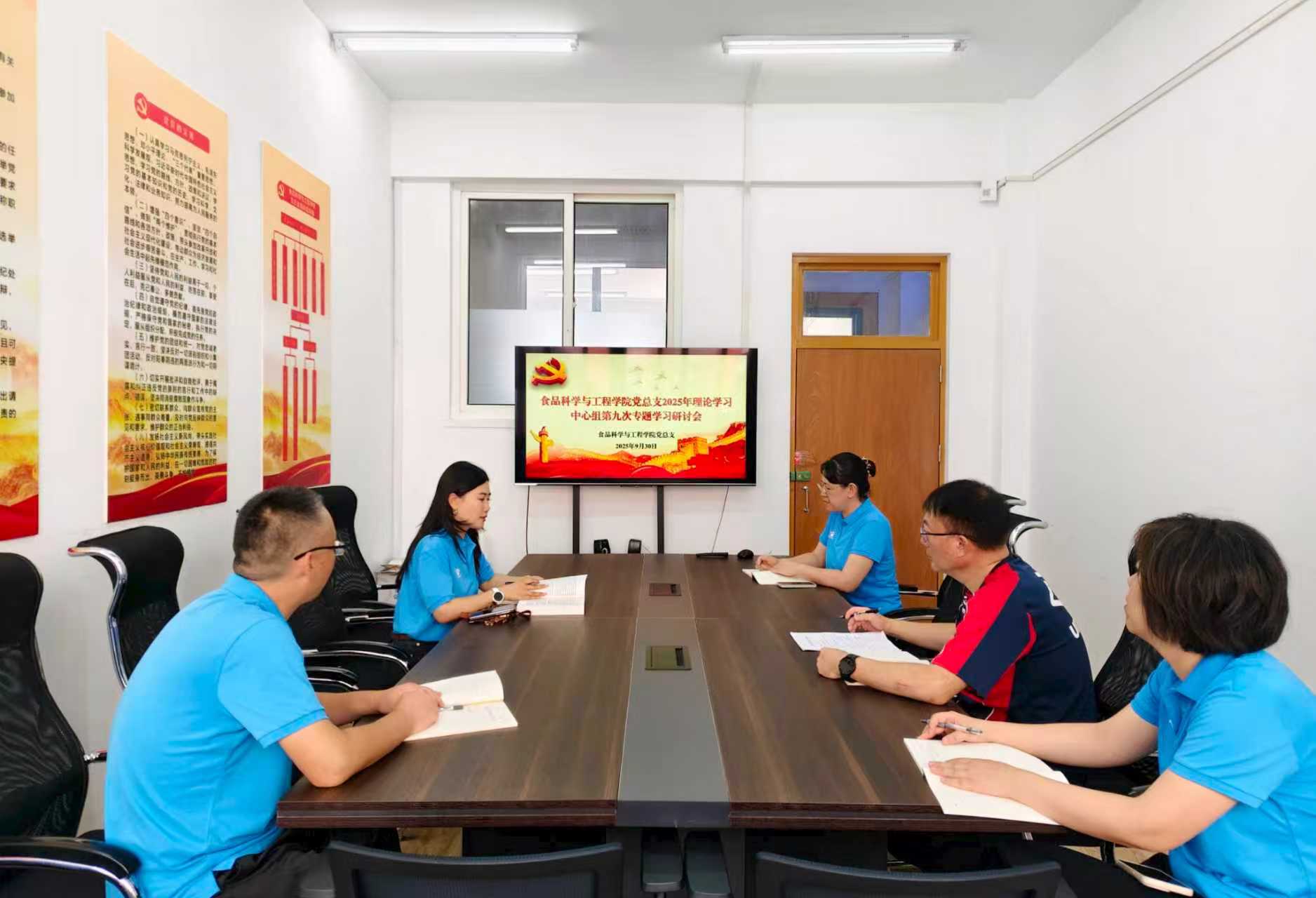 9月30日上午,食品科学与工程学院党总支在党员活动室召开了2025年第九次理论学习中心组专题学习会议,理论学习中心组成员参加学习,会议由学院党总支书记张潇月主持。