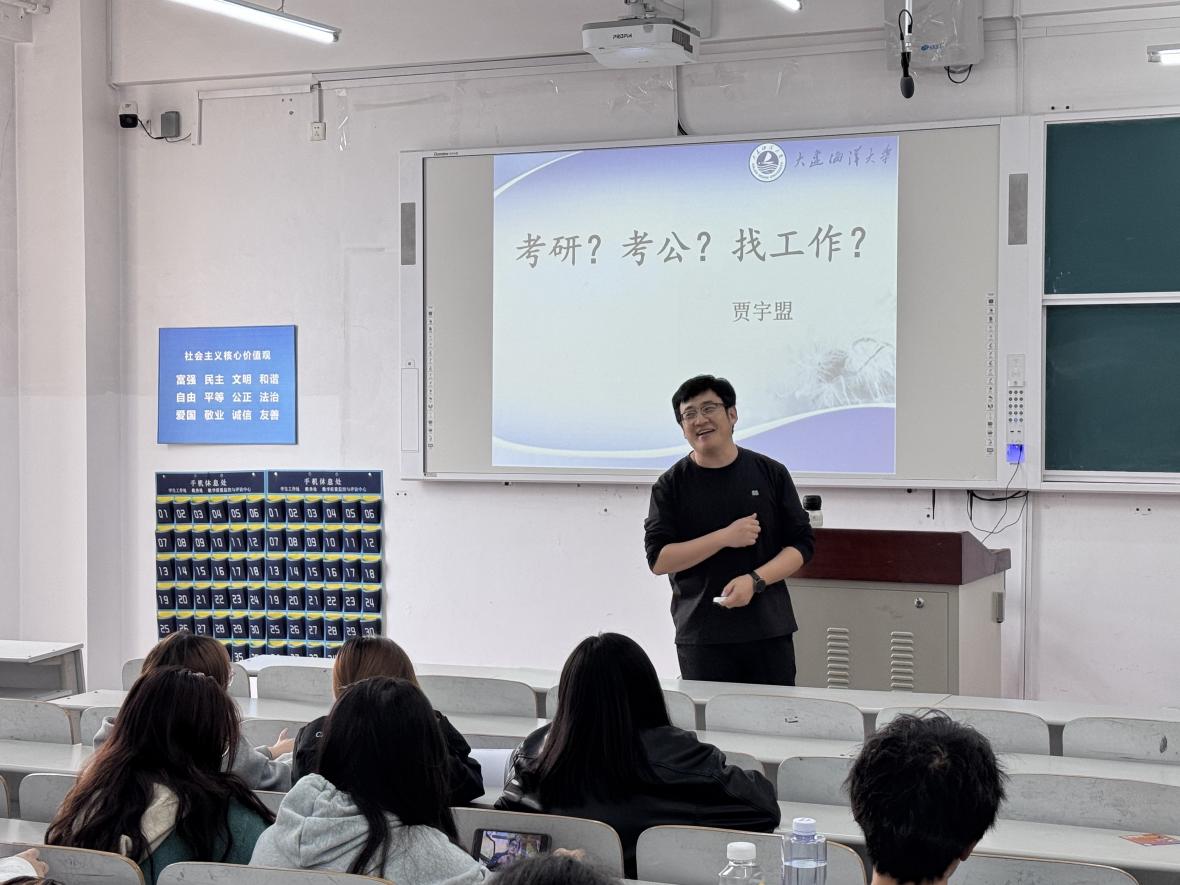 贾老师勉励同学们尽早确立目标,坚定决心、专注复习、耐住寂寞,以积极心态迎接未来的挑战。同学们纷纷表示受益匪浅,对个人职业路径有了更清晰的认知。