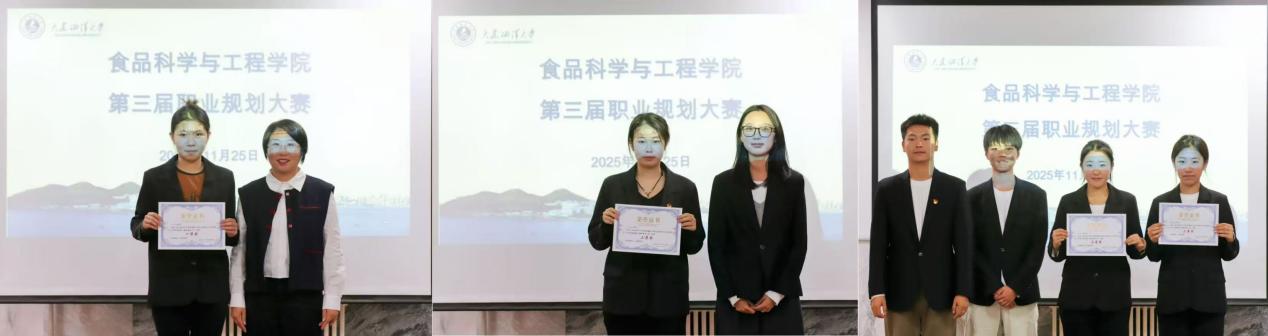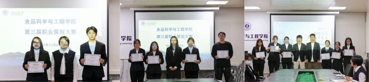 经过激烈角逐,来自食品科学与工程学院成长赛道的郭雪淞、张思雯、王艺文和就业赛道的刘骄娆、敖唯淳、佟秋阅等十余名同学分获大赛一、二、三等奖。
