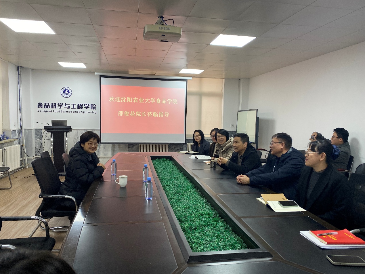 1210日,沈阳农业大学食品学院院长邵俊花教授应邀来访我院进行学术交流。学院相关领导、学科带头人、科研团队负责人及青年教师代表参加座谈交流。