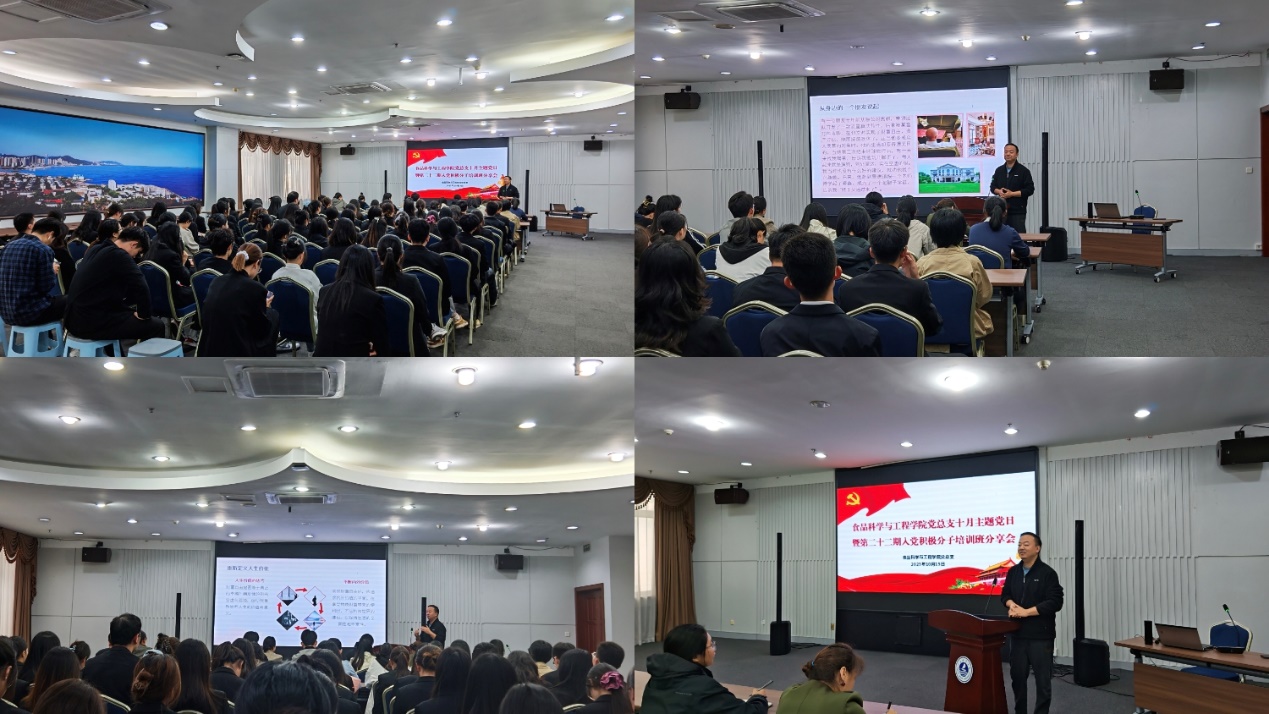 10月15日,食品科学与工程学院党总支在图书馆多功能厅开展十月主题党日活动暨第二十二期入党积极分子培训班分享会,食品科学与工程学院全体教师、全体学生党员、第二十二期入党积极分子培训班学员参会。