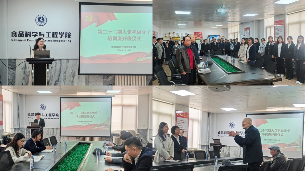 3月30日,食品科学与工程学院党校分校在北院综合楼S108会议室举办第二十三期入党积极分子培训班开班仪式。离退休工作处党委书记刚健、第九党支部书记张耀林,食品科学与工程学院党委书记张潇月、副书记沙雷、本科生党支部书记于茂林、研究生党支部书记车盈,离退休工作处及学院第二十三期入党积极分子培训班学员参加开班式。