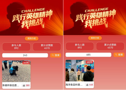 学生紧扣“践行英雄精神”的实践主题,将专业优势与社会责任深度融合,打造了一系列优质实践作品有的走进校园课堂开展食品安全知识宣讲,用专业所学守护师生饮食安全;有的深入社区一线开展科普志愿服务,向老年群体普及健康饮食知识,传递奉献精神;有的化身海洋食品科普讲解员,在展馆传播海洋文化与食品知识;有的参与净滩环保志愿活动,清理海岸垃圾、守护海洋生态,彰显青年环保担当。目前已有多项作品在活动平台展示,累计收获数千次点赞,充分展现了食品学子昂扬向上的精神风貌与扎实的专业素养。学将爱国情、强国志、报国行融入日常实践,在志愿服务、科普宣传、生态保护等领域发光发热,用青春力量诠释英雄精神的时代内涵。