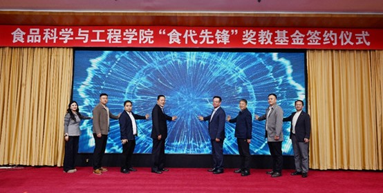 10月29日,我院在图书馆报告厅举行“食代先锋”奖教基金签约仪式。校党委书记衣庆焘、党委副书记李智军,辽宁鸿文世纪科技有限公司党委书记、辽宁省青年企业家协会秘书长、2008届校友张奕奕,鸿文世纪教育集团副总裁、盘锦中北学校常务校长、2011届校友侯海洋,大连泓硕教育科技集团有限公司负责人、2009届校友刘超,富亿达(辽阳)低碳新能源科技有限公司总经理富松,宁可说私董会发起人、辽宁省演讲学会常务副会长申晓宁出席仪式,共同启动食品科学与工程学院“食代先锋”奖教基金。衣庆焘在致辞中向慷慨捐资的校友企业和社会企业致以最诚挚的感谢。他指出,“食代先锋”奖教基金的设立,不仅凝聚了校友对母校的深厚情谊,也体现了社会企业对人才培养的坚定担当。这不仅是对先进典型的肯定,更是对“以学生为中心、以教师为主体”办学理念的生动诠释。他希望食品科学与工程学院的全体师生,能将这份厚爱转化为前行的动力,在科研领域勇于攻克“卡脖子”难题,在育人工作中不断取得新突破,不辜负企业家和校友的殷切期望。同时,以此次基金设立为契机,进一步深化校企合作和校地协同,在人才培养、科研攻关、成果转化等方面开展更加广泛而深入的交流合作,共